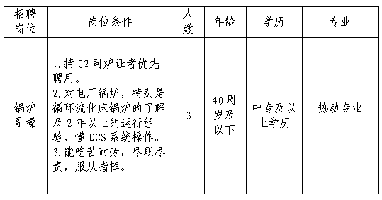 武穴城投熱能有限公司公開招聘部分特殊崗位技術(shù)人員公告